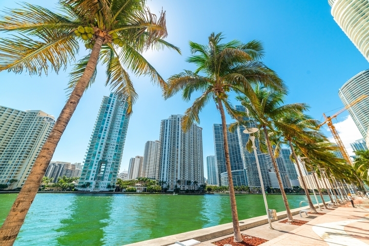 Sun,Shining,Over,Miami,River,Walk.,Florida,,Usa